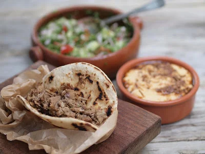 Once a lamb shoulder had been boned out and butterflied it was covered with a spice mix containing cumin, coriander, chillies, oregano, garlic, lemon zest and olive oil before being tied up and roasted in the oven over a layer of roughly chopped onions.